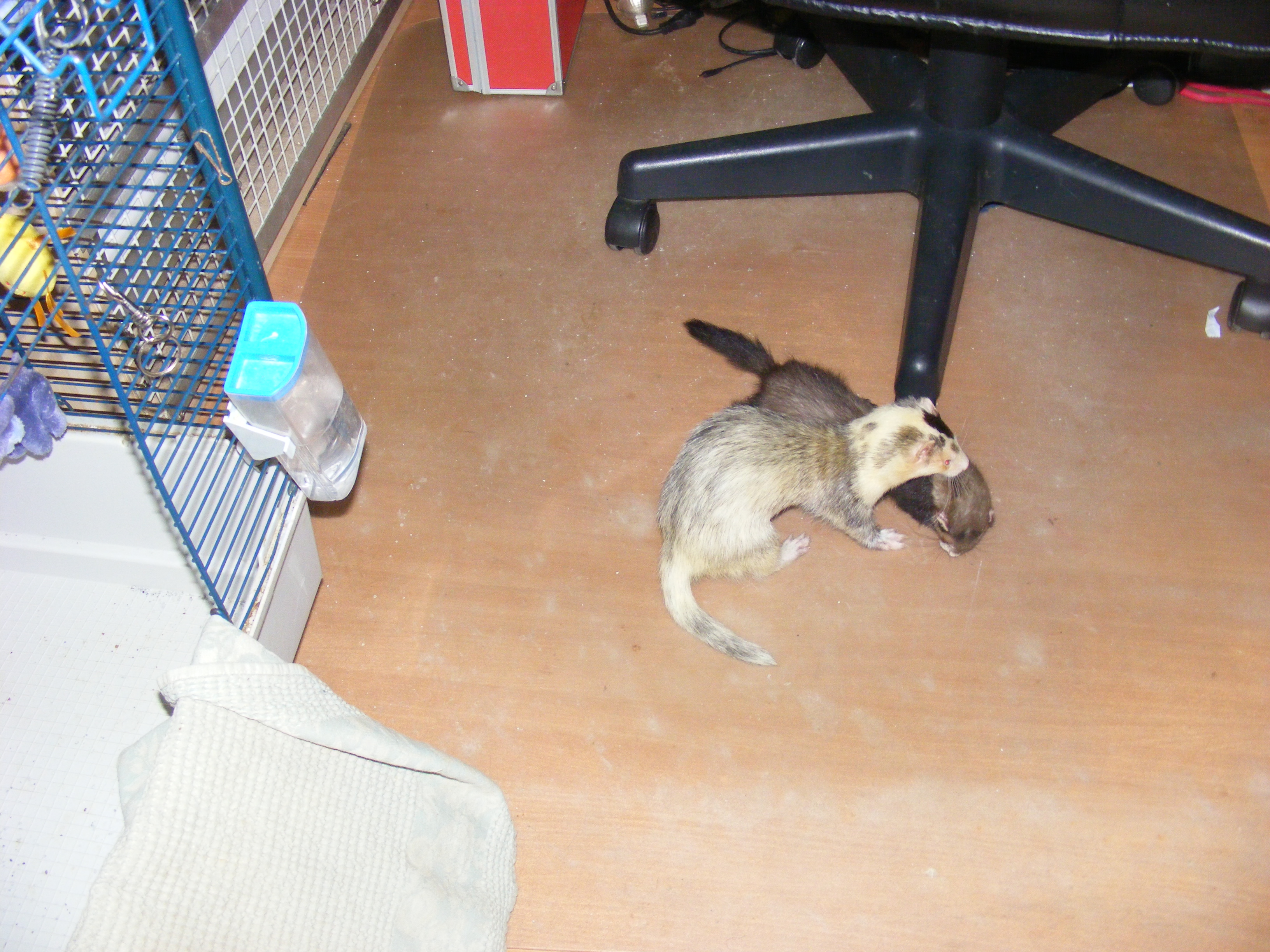 Thuis gekomen, maar gelijk de proef op de som, en de grootste groep fretten eruit, ja heerlijk om te zien, eigenlijk geen centje pijn, onze Wizzard moest wel nog even duidelijk vertellen dat hij wel de baas was, maar dat ging met redelijke zachte hand.