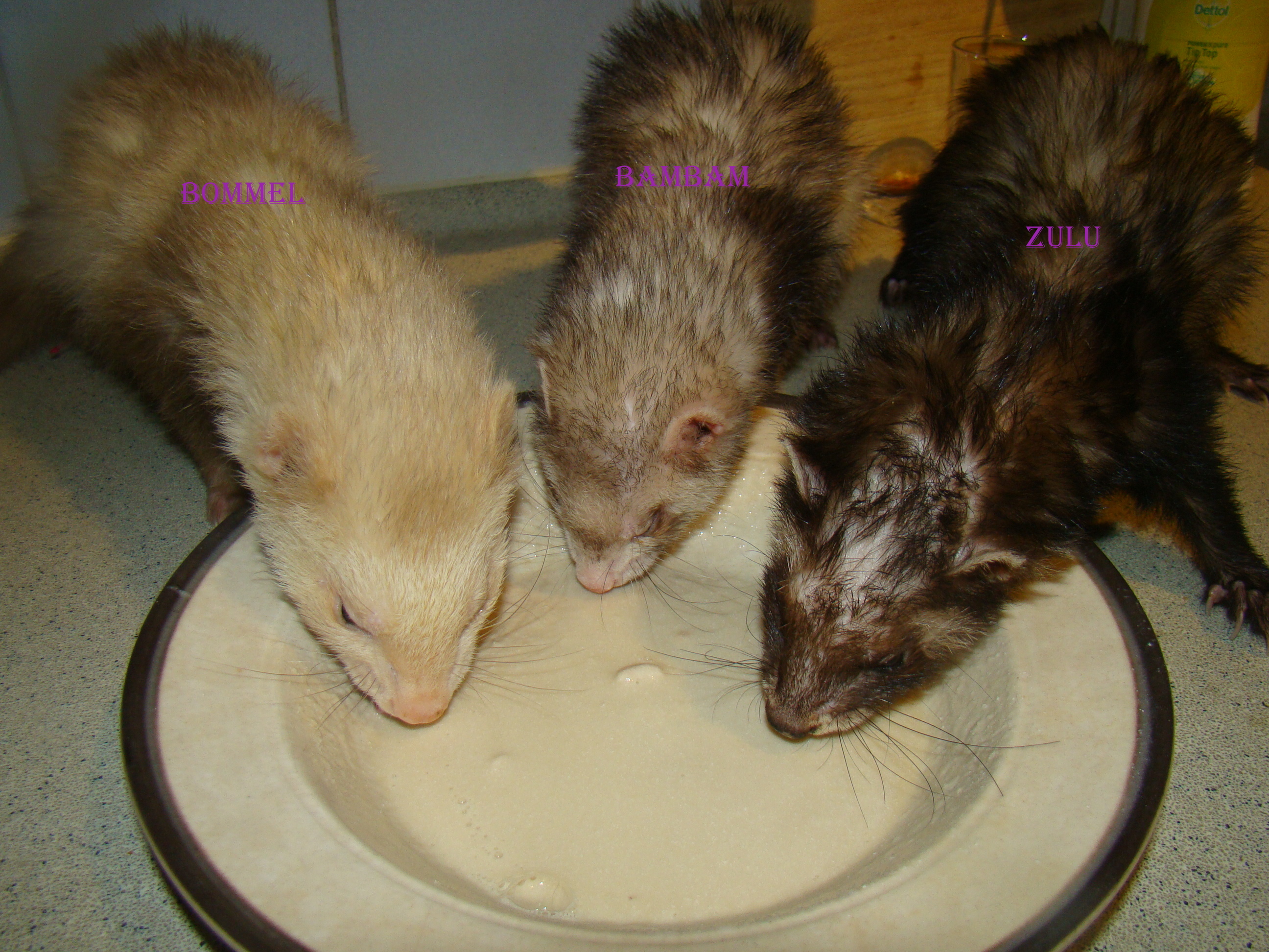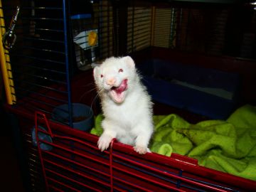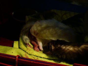 Heerlijk om s'morgens na beneden te komen en gelijk dat hele mooie geluidje te horen, namelijk het gepiep van kleine fretten pups.