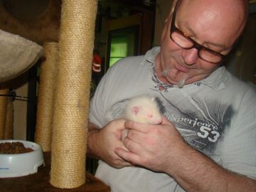 De kleine Dew man van Snowy heeft het niet geredt en is met 6 weken rustig op mijn schouder ingeslapen(30 Augustus), dit was wel een heel verdrietig verhaal, omdat we ook niet wisten waar dit aan lag, We waren nog met hem bij de Da geweest, maar deze kon ook niet gelijk iets constateren, dus kreeg wel antibiotica, pijn spuitje en vocht toegediend, maar dit heeft jammer genoeg ook niet mogen helpen.