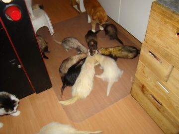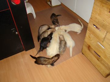 Dus dit is voor het eerst in al die tijd dat we fretten fokken, dat we zelf 2 pups gehouden hebben, dit is heel bewust gebeurd , het wordt alleen volgend jaar even opletten om de papa's bij hun dochter vandaan te houden, maar is geen probleem, daarbij gaan we hoogstwaarschijnlijk volgend jaar ook Loki als dekfret inzetten.